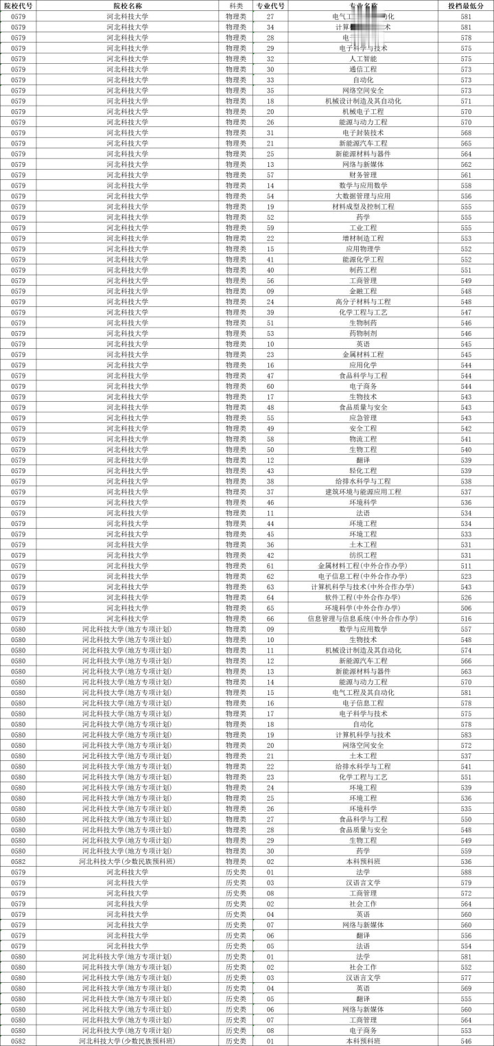 河北科技大学历史类投档分数线最高588分,最低554分,物理类投档分数线最高581分,最低531分。
