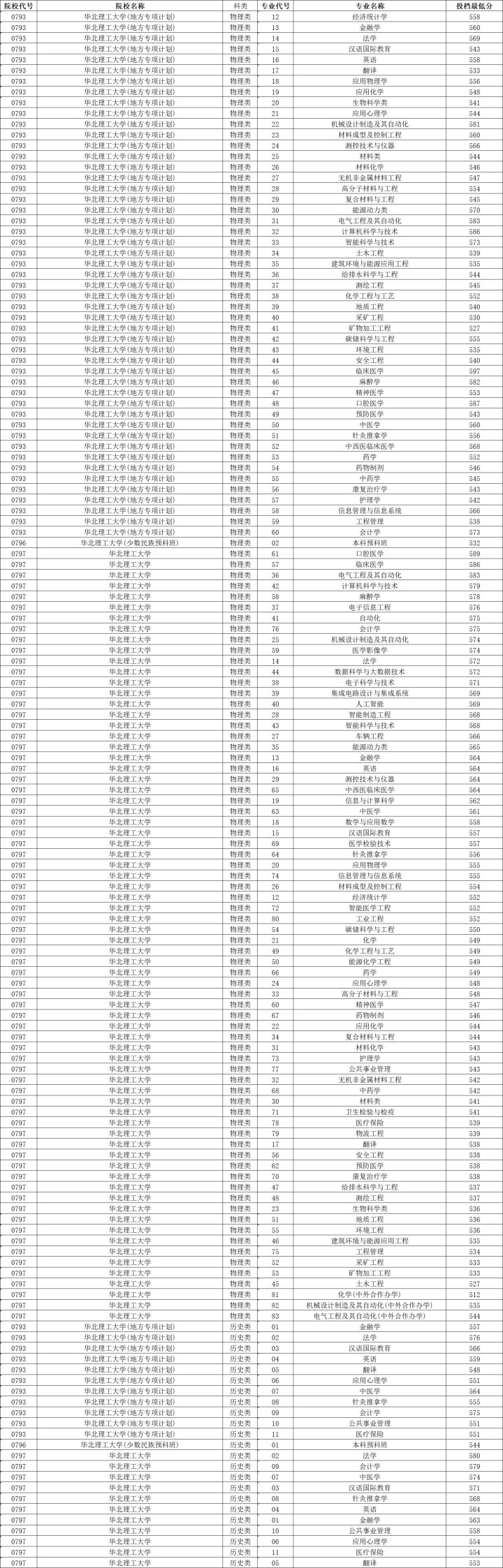 华北理工大学历史类投档分数线最高580分,最低553分,物理类投档分数线最高589分,最低527分。