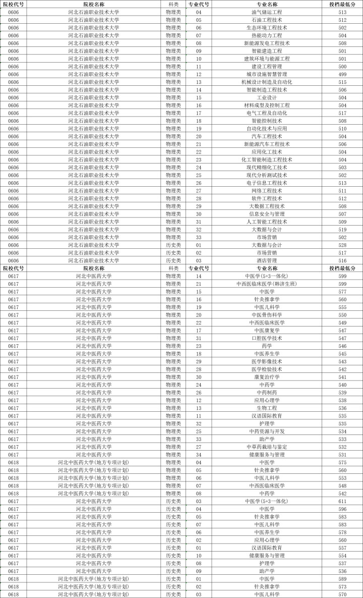 河北石油职业技术大学历史类投档分数线最高528分,最低516分,物理类投档分数线最高513分,最低502分。