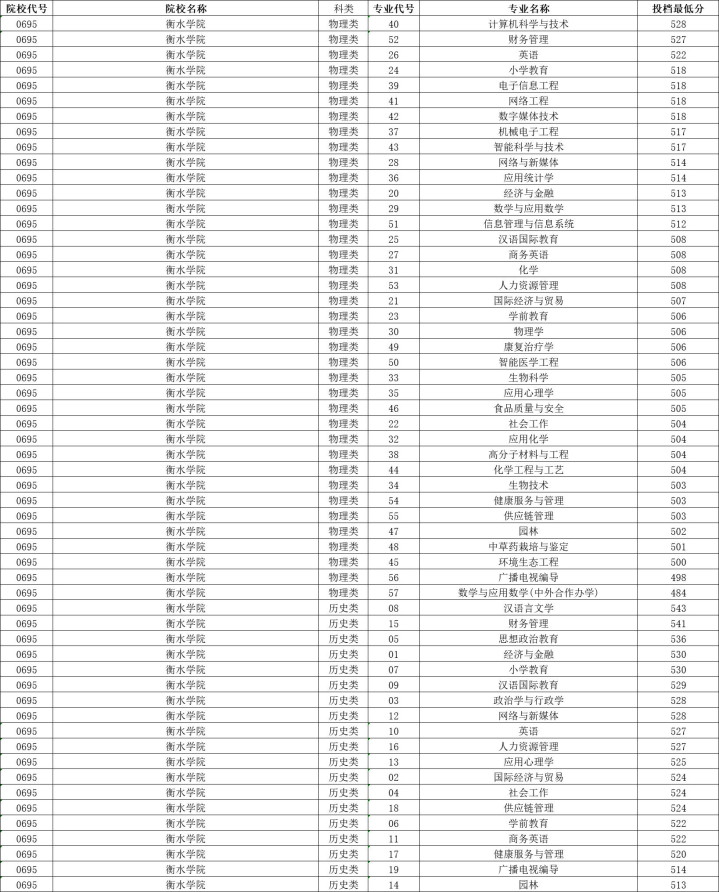 衡水学院历史类投档分数线最高543分,最低513分,物理类投档分数线最高528分,最低498分。