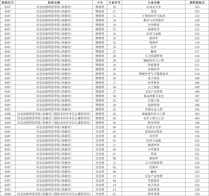 河北民族师范学院历史类投档分数线最高553分,最低520分,物理类投档分数线最高555分,最低502分。